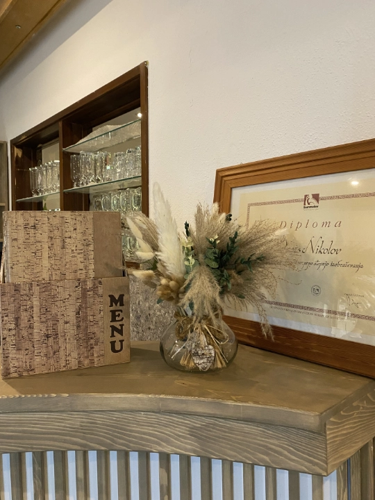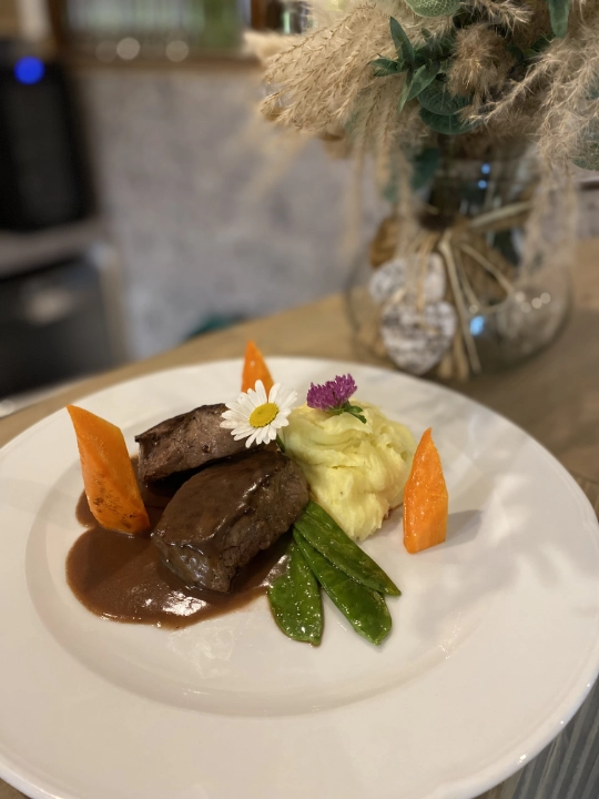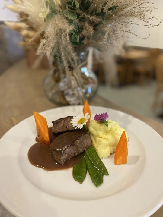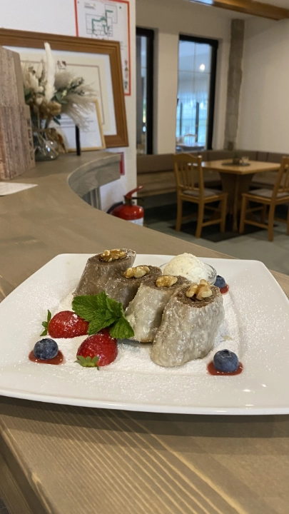 Naša kuhinja je zasnovana z ljubeznijo do preprostih, a okusnih jedi, kjer uporabljamo lokalne sestavine in sveže pridelke. Poleg klasičnih slovenskih jedi, kot so divjačinske specialitete, nudimo tudi sodobne kulinarične pridih. Naš šef Denis vam bo z veseljem postregel z jedmi, ki so pripravljene z ljubeznijo in spoštovanjem do narave ter lokalnih tradicij.